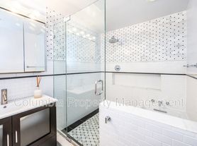 Gorgeous luxury marble bathroom, with designer glass shower and bathtub system. In-unit washer and gas dryer. Internet/cable/HDMI hook-ups and expansive closet systems. Two entrances with digital locks. Well insulated, with efficient heating/cooling system for lower utility expenses. Note: the dark blue walls were painted to a neutral light color.