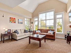 SEASONAL WINTER LEASE FOR 3 MONTH TERM STARTING JANUARY 1, 2026 (NEGOTIABLE). Your winter wonderland getaway awaits. This welcoming 3 bedroom, 2 bath resort home sleeps up to 8, is fully turn key with an extremely well-equipped kitchen that includes a choice of 3 types of coffee makers and even has a donut maker, which will be a hit with the kids for sure! The desirable Rivergrass community is walking distance to the Village restaurants, shops and boutiques and of course the ski hills. The On Demand Shuttle Service is available to pick you up and drop you off at the Village, if you want to save your energy for the slopes. This meticulously designed chalet with a southern exposure provides the cozy comforts and feel that you are looking for. Take in the views from the open living area, with cathedral ceiling and expansive windows looking across the golf course to the mountains and the night lights on the ski hills. Relax and curl up around the warm gas fireplace. Watch your favourite movie on the 55'' Smart TV in the living room. Sofa opens up into a queen pull out. The large wood dining table is family perfect and great for entertaining. The open kitchen with breakfast bar over looks the living areas. Sip your morning coffee or a refreshment at the end of the day around the breakfast bar. 2 bedrooms with closets on main level with primary suite and ensuite bathroom on upper level. Convenient entry hall and laundry closet on main floor. The year-round outdoor hot tub just outside a few steps away is an added bonus for you to enjoy and relax in after your fulfilling day. The location is ideal being so close to the Village activities and events and fine dining. No need to drive to get everything you need. Collingwood or Thornbury are each only a 10-minute drive if you wish to look for additional options for entertainment, dining or shopping. Great times ahead this coming ski season!