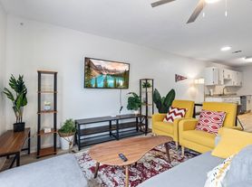 This stylish space is great for workers, families, and visiting students. Step inside to a bright and welcoming living area, adorned with modern furnishings and tasteful decor for a comfortable stay. The living room is a stylish and inviting space with a cozy sofa, lounge chairs, and a large 50-inch LED 4K Smart Roku TV for you to enjoy your favorite shows and movies. The room's fun colors pop and adds a touch of elegance to the room. Prepare delicious meals in the fully equipped chef's kitchen, complete with cook/bakeware, utensils, coffee maker, microwave, and oven. The home is a fully furnished oasis, featuring eclectic furnishings with attention to detail throughout. The plush mattresses and luxury linens ensure a restful stay.