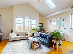 The unit is a light-filled 3rd-floor walk-up with skylights and 14-foot cathedral ceilings. It has central air, central heat, stainless appliances including dishwasher, and in-unit washer-dryer. A big kitchen island makes cooking fun and easy, and we have a little deck out back to sit in summer. This is a quiet 3-unit building, and our downstairs neighbors are sweet and considerate.