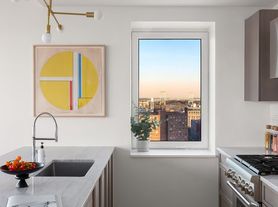 This spacious studio residence offers a corner living area with floor-to-ceiling sound attenuated windows which face North and East. The massive walk-in closet is a dream come true for any New Yorker. The thoughtfully crafted kitchen features Athens Silver Cream Marble countertops and backsplash, custom Oak cabinetry, Range by Thermador, hood by Elica, with Refrigerator and Dishwasher by Bosch. The spa-like bathroom features an warm natural materials including Honed Vanilla Marble and Eagle Grey Limestone with Custom Brass Fixtures by Watermark and a Deep soaking tub by Zuma. This home also features Wide-plank Oak flooring throughout, high ceilings and washer/dryer by Bosch.