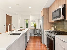 Quartz countertopsStylish kitchenOpen main levelAttached garage parkingCentral airIn-unit laundryHardwood floors