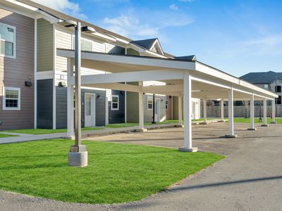 Small fenced backyardTwo-car covered parking
