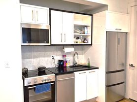 This recently renovated three-bedroom apartment, situated on the ground floor of a charming three-family house in a blistering neighborhood of Crown Heights, offers a spacious and exclusive backyard. The apartment features an open kitchen and living room area separated by a kitchen island, adorned with hardwood floors, white kitchen cabinets, marble countertops, and an island.