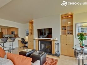 Designer furniture and a wood burning fireplace add to the ambiance and contemporary style of the apartment. A 55 inch smart flat screen television, blue ray player.