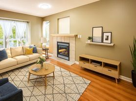 This 3-bedroom, 2.5-bath corner townhouse offers 1,750 sq. ft. of smartly designed space. Main floor includes a bright living room with hardwood-style floors, large windows, and gas fireplace, plus a dining/family area with bay window. The kitchen features granite counters, island with wine rack, full appliances, and balcony access. Upstairs: 3 bedrooms with ample closets; primary fits a king. Two full baths up, powder room on main. Added perks: upper laundry, double tandem garage, private deck with greenery views, and corner-unit privacy. In Camelot Village near schools, parks, shopping, transit, and future SkyTrain. One dog negotiable.