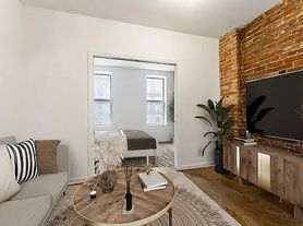 Elegant hardwood floorsCherry cabinetryExposed brick wallsLarge windowsQueen-sized bedroom