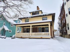 Separate entrance way. Includes full size front porch with view of quiet street. Deck in rear of house available for grilling, etc. Traditional large living room, dining room and kitchen with adjacent butler pantry. Stone hearth fireplace (non-working) provides living room ambiance. Large bedrooms with roomy closets. Bathrooms; one tiled - second floor master, full bath 3rd floor and 1/2 bath (basement). The entire unit has been redecorated. New triple track storm windows were installed in the entire house in 2023. Hardwood floors. Natural wood trim. Includes originally finished third floor (with 2nd full bath) for storage (left and right wings) as bonus area. Appliances - stove and refrigerator. In unit washer and dryer located in large private basement. Off street parking for 2 cars. Tenants pay RG&E. Landlord furnishes, water, snow removal, trash pick ups and landscaping. This is a fine apartment, suitable for tenants that favor roominess and a lot of natural light situated in a very desirable Rochester area. The layout is all original and unaltered. A value in this location. Please feel free to contact the RG&E for utilities consumption history. A full security deposit and signed one-year lease will be needed to hold the unit for June 1, 2026 occupancy.