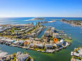 Located on Holiday Isle in Destin in the gated community of Sun King Towers this stunning 2 bedroom, 2 bathroom 6th-floor unit offers a 2 parking spaces. The interior features attractive decor and is fully furnished. As you enter the unit you are greeted by the spectacular full kitchen which boasts ample cabinet space, stainless appliances, and a breakfast bar that overlooks the spacious living room and dining space which features plenty of natural light that streams in from the balcony with custom shutters. The roomy primary suite is a dream come true with a walk-in closet and a tiled shower. Another good-sized bedroom with two beds and three closets, an additional full bathroom with tub/shower combo, and a laundry area with a washer and dryer included "as-is" complete the interior layout of this magnificent property. Outside you will have two private balconies perfect for enjoying your morning coffee or relaxing while you take in the sunset. You will enjoy many community amenities such as a clubhouse, fitness center, fishing, picnic and grill area, harbor-front pool, dock, nearby beach access, and water taxi availability. You do not want to miss the chance to call this beautifully furnished unit home! Water, sewer, and garbage are included. One cat (no dogs) are accepted with a $300 per pet non-refundable pet fee (Subject to Owner Approval) No smoking is permitted. HOA rules and regulations apply.