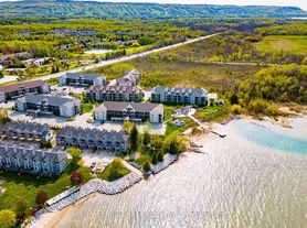 WINTER SKI SEASON RENTAL IN WYLDEWOOD COVE - Beautifully furnished 2 bedroom, 2 bathroom end unit located on the second floor with elevator access featuring gorgeous views of Georgian Bay from the living room and kitchen areas + 2 covered balconies. Community offers a year-round heated outdoor pool, gym and is located a short drive from downtown Collingwood and ski hills. This unit also comes with two assigned parking spots. Pets considered! Please note, wooden sleigh bed in second bedroom has been replaced by single over double bunk bed, as depicted in one of the photos, further, round table in living room has been replaced with a square dining table that folds out with leaves to comfortably seat 6 people. Available December 1st to March 31st. Utilities in addition to rent