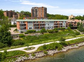 Discover the epitome of luxury living at "The Roxborough" Condos in Downtown Barrie! One of Barrie's most stunning works of architecture. This elegant 3-story stone building is surrounded by lush gardens, a private gazebo, and an outdoor dining space. Inside this 2-bedroom second floor unit, you'll find a balcony overlooking the gardens, an open-concept kitchen, dining, and living area, as well as in-suite laundry. This sun filled unit offers great space with an open concept kitchen/living room combo. A large master with two closets and a work space looking out over the gardens. Other features include hardwood floors (no carpet), crown mouldings and a fire place. The building features underground parking, a party room, a guest suite, and visitor parking. Enjoy a hassle-free lifestyle just steps from the Waterfront and Downtown Barrie's vibrant amenities restaurants, shopping, theatres, art galleries, festivals, and the renowned Farmers' Market. Units in this quiet, highly sought-after building are rarely available don't miss your chance! Recent updates include a new roof (2023), a new patio, and a new gazebo.