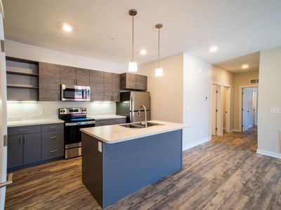 Granite countertopsWalk in closetsOne car garageVinyl plank wood flooringStainless steel appliancesNine foot ceilingsPrivate deck