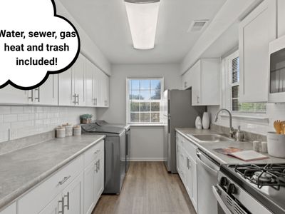 In unit laundry hookupEat in kitchenGas furnaceFirst floor apartmentDriveway spacesBack deckSun room