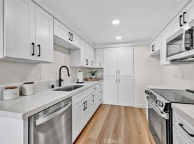 Large one-story Condo - Two Bedrooms, two Bathrooms, washer/dryer hookups (photo is just an example of where your washer/dryer can be located), 1 car detached garage (dedicated side of a two-car garage) , SWIMMING pool, wall AC in Living room and both bedrooms.