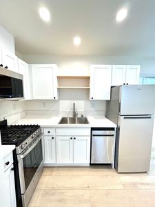 Newer stove, new roof and skylite, with hard wood floors. Very bright upstairs unit with panoramic view of the ocean and channel islands. 2 blocks to town, 4 minutes to Beach. Large Deck off living room with ocean view and large deck off bedrooms with mountain and canyon view. Very private. 1 car garage with additional parking space.