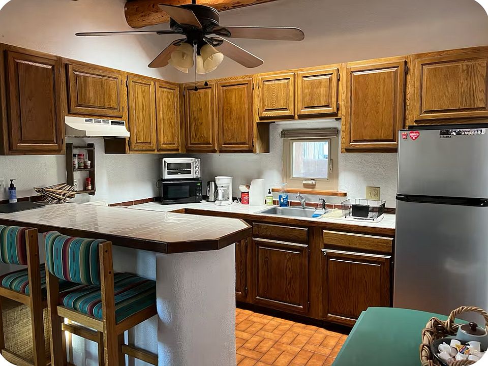 Welcome home to this quaint & convenient 1 bed/1 bath condo in town, on Kit Carson. Well-appointed and appropriately furnished with a love seat & television in the living area, dining table and chairs in the dining area &. a queen bed in the bedroom. The condo feels super spacious with beautiful natural light! Walk to the plaza, shows at Kit Carson Park or TCA, or take the back roads to work and avoid town all together!