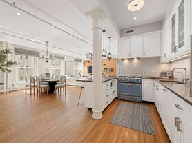 The unit comprises the garden level, second floor, and 1/3 of the third floor of the townhouse. The garden level is the heart of the triplex. The great room is a generous expanse divided by original columns. There is natural separation between the open kitchen and the living and dining areas, complemented by ceilings 10.5 feet high. The great room gazes into the backyard through glass-paneled doors. With lovely trees and privacy fencing, the garden offers ample room for dining and recreation.