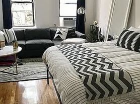 Located between 7th and 8th Avenues, this naturally bright junior 1-bedroom apartment features beautiful hardwood floors and a spacious layout that comfortably fits a queen-sized bed with additional furnishings.