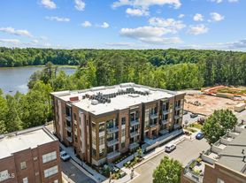 LAKE VIEWS! Must see 1 bedroom flat with additional office space located at Lake Shore condos on Centennial Campus. Third floor unit facing the lake is light and bright! Open living, dining, and kitchen. Bypass doors on bedroom create privacy if desired. Custom closet is ready for you to personalize! Beautiful white tile walk-in shower and chic wall mounted vanity. Washer dryer included. Assigned parking. Secure building. Community pool. Easy access to downtown, Dix Park, I40 and so much more. Act fast. Available immediately. NO PETS!