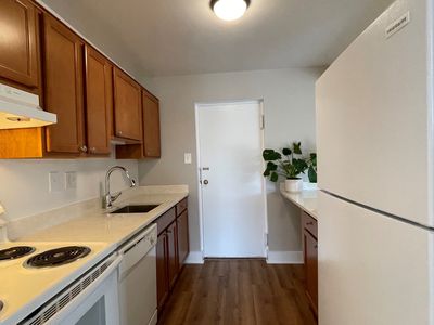 Spacious walk in closetFresh white cabinetsLarge balconySemi-private viewTile finishesHigh ceilingsIn-unit laundry