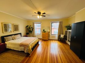 Very large bedroom with lots of light, hardwood floors, built in bookshelves, and enough room for an in-home office area.