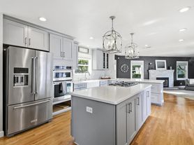 The kitchen has tile flooring, shaker cabinets, and granite counters, door to rear yard and is equipped with: