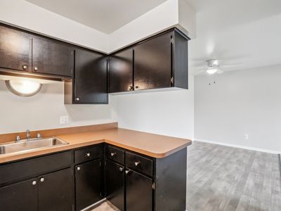 One bedroom, one bathroom, living room, dining balcony, galley, kitchen, walk-in closet, upper unit, laundry accessible in the basement. Nice safe and secure.