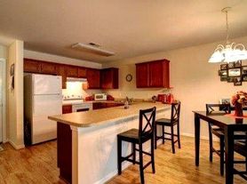 - Handsome Wood-style Flooring in the Living Room, Kitchen, Bath, and Hallways