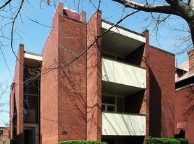 Second-floor residence located in a contemporary apartment building with wood-burning fireplace; exposed brick in living room and bedroom; hardwood floors with carpeted bedrooms; track lighting; walk-in closet; private balcony; central air conditioning; modern kitchen with refrigerator, range, and dishwasher; private storage lockers and coin-operated laundry facilities in building; off-street parking available for an additional monthly fee.