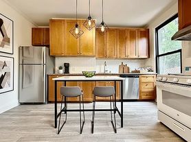 This is a sunny entire top floor 2 Bedroom with a full bathroom apartment in a well maintained 2 Family House on a quiet tree-lined residential block. High ceilings with crown moldings and full sized windows in every living space and bedrooms. A large walk-in double door closet. Dining room. Spacious living room for relaxation. Hardwood floors throughout. Ceiling fans and lights. Newly refurbished with new and updated appliances and a dishwasher in a large eat-in kitchen. This is a non-smoking apartment and no pets policy. Private entrance and interior staircase not shared by others. E-bikes and lithium battery charging are not permitted