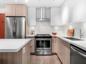 Welcome to Ravenwoods, located near the community of Deep Cove, 20 minutes to downtown Vancouver. This 859 sq ft spacious unit junior 2 bd (will fit a single bed) with two FULL bathrooms. It is located right on a beautiful water feature that feels like lakeside living. Enjoy a book on the patio while you listen to the sound of the infinity waterfall ahead. This very open unit has a large kitchen and island, great for entertaining, with gas stove top. The master bedroom has a queen bed with walk in closet and separate full bath, the 2nd room has a desk, book shelf and can host a single bed that can fold into a couch. The condo has a smart TV and all kitchen needs. An electric fireplace is great for a comfy winter movie night. Location: This sought after location is extremely favourable all year long, just 5 minutes to Cates Park beach with kayak rentals and just at the base of Mount Seymour for skiing and snowshoeing. There are many great forested trails near this peaceful oasis and only a 15-minute walk to grocery shopping, coffee shop, restaurants and a golf driving range. The unit also comes with access to a large gym, amenities room and theatre room. 1 parking spot, 1 storage unit, in-suite Laundry.
