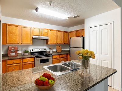Lovely kitchenTile and carpet flooringScreened-in lanai