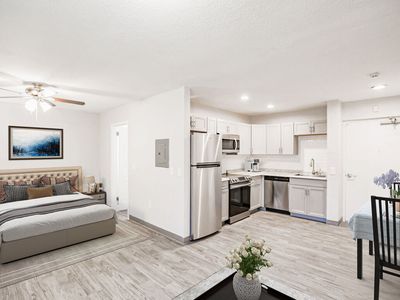 Three-bedroom two-bathroom homeLaminate flooringHigh ceilings