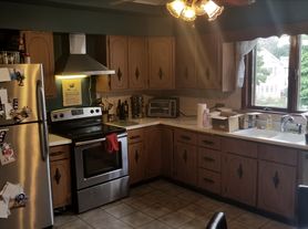 * Very large eat-in kitchen with tons of cupboard and counter top space, Stainless Steel Appliances - full-size fridge, dishwasher, electric range and oven, hood. Large window over double sink and ceiling fan.