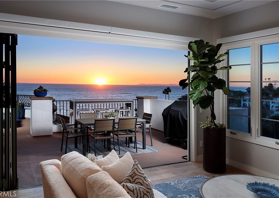 THE ULTIMATE SEASIDE RETREAT with breathtaking ocean and whitewater views from this spectacular and spacious one-story "Coastal Penthouse" in prime location very near the beach, pier area, shops and restaurants of downtown San Clemente. This luxurious property boasts the finest architectural detail with an open-concept design, floor-to-ceiling windows capturing the ocean view, and large expansive deck areas, complete with outdoor fireplace, perfect for indoor/outdoor living, entertaining and relaxing while enjoying the amazing ocean view. This property spotlights an elegant use of space with large living, dining, kitchen and family room areas...all with ocean views. The Chef's kitchen is a delight with large island/breakfast bar with quartz waterfall counters and commercial style appliances. The lavish primary suite is amazing complete with a private balcony deck, ocean view, and gorgeous primary bath with dual vanity sinks and separate tub and shower. The additional two secondary bedrooms, each with ensuite bath equipped with high end designer touches, are beautifully finished. This fully furnished property, with nearly 3,000 square feet of living space plus deck areas, includes a total of 3 bedrooms, 3.5 baths and highlights the exceptional quality and ocean view from all main rooms offering a serene and secluded beachside setting. The contemporary furnishings, inside and out, are superb and designed for comfort with a casual yet sophisticated decor style. An elevator leads you to this fully furnished oasis covering the top floor plus 3 parking spaces are provided. An inside laundry room is located next to the kitchen rounding out the extraordinary amenities. Enjoy the fun and festive beach lifestyle living in this exquisite masterpiece surrounded by the tranquil sound of the rolling surf, ocean breeze, and ever-changing ocean views.