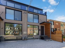 Rare Lease Opportunity! Be the first to live in this stunning, brand-new 3-storey townhouse in the heart of South Riverdale offering over 2,000sqft of thoughtfully designed, stylish living space in one of Toronto's most vibrant communities. The bright, open-concept main floor boasts 9-foot ceilings, floor-to-ceiling windows, engineered hardwood floors, and sleek LED lighting throughout. At the centre of it all is a modern chefs kitchen featuring quartz countertops, matching backsplash, an impressive 11-foot island, stainless steel appliances including a gas stove, built-in dishwasher, fridge & freezer, and beverage cooler. The spacious family room opens through oversized sliding doors to a private deck and fenced backyard great for seamless indoor-outdoor living and entertaining. The second floor includes a luxurious primary suite with double closets and a spa-inspired open-concept 7-piece ensuite including a soaker tub, double vanity, glass-enclosed shower, and water closet. This level also includes a generous second bedroom with a Juliet balcony, a full 4-piece bathroom, and a convenient laundry area. The third floor is flooded with natural light from skylights and features two additional bedrooms each with their own balcony, 3-piece ensuite, and a dedicated A/C unit for maximum comfort. Located just steps from Dundas St E., Queen St. E and the best of Leslieville, you'll enjoy a short walk to trendy cafes, restaurants, shops, parks, and the Jimmie Simpson Recreation Centre. With easy access to transit, top schools, and downtown Toronto, this location truly has it all.