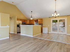 Gleaming hardwood floorsModern kitchenStainless steel appliancesBreakfast bar
