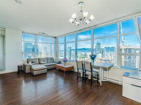 Fabulous 832sf, 2 bedrooms, 2 bathrooms condo with upgraded laminate floors throughout living areas and both bedrooms. The open living-dining room has access to a balcony with some views of North Shore mountains in the background. Gourmet kitchen features engineered quartz countertops, serving island with breakfast bar, 3 sides of rich dark veneer cabinets, soft-closing drawers, glass tiled backsplahs, double under-mount steel sinks, extra pantry, and stainless steel appliances including a gas cooktop and built-in oven. The primary bedroom has a walk-in closet and a 5 pcs primary ensuite. The 2nd bedroom overlooks the balcony. The second bathroom is a 3 pcs with walk-in shower stall. Rent includes 1 parking stall