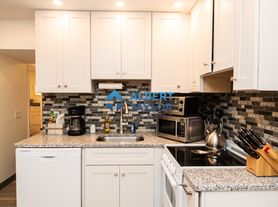 The open living/dining area features a sectional sleeper sofa, a 55 flat-screen TV, a breakfast bar with seating for two, and a dining table. Brand new kitchen with granite countertops and white cabinetry. Beautiful glass tiled double shower featured in the bathroom. The bedroom offers a Tempurpedic queen-sized bed. The condo is nestled in the back of the building offering tranquility and privacy. 3-minute walk to D line, shops, and restaurants. Easy commute to Boston, 5-minute train ride to Boston Children s Hospital, Beth Israel, Brigham and Woman s, Dana Farber.