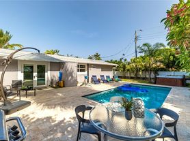Private tropical escape in the heart of Pompano Beach. Beautifully furnished 2-bedroom, 1-bathroom home is the ideal retreat for a relaxing short-term stay, just minutes from the beach, great restaurants, and shops. The home features two comfortable bedrooms with quality linens and ample storage, one king size bed and one queen size bed, a modern bathroom with shower, and a fully equipped kitchen complete with cookware and dining space for four. Full size washer & dryer. The backyard includes a beautiful pool, separate hot tub, games, lounge chairs and privacy fence all around. Walls are soundproofed for complete privacy. Only available short term. The unit next door is also available for rent and is a 1/1 with its own pool, it is completely private as well.
