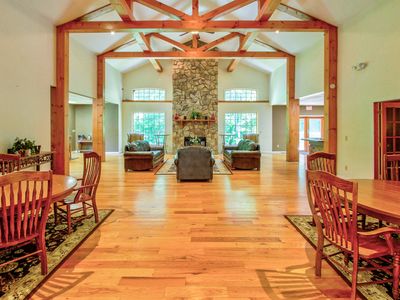Spacious living room, dining room, and large kitchen