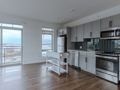 Stunning kitchen with stone countertops and stainless steel appliances