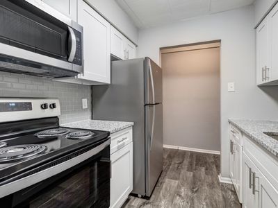 Quartz countertopsStylish cabinetryModern open-concept floor planGenerous walk-in closetWasher and dryerFlex roomCenter island