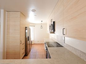 The spacious primary bedroom includes two closets and a private en-suite bathroom. A stacked washer and dryer are included in the unit for your convenience.