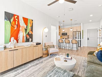 Modern light-filled interiorModern kitchenCozy bedroom setupsFully stocked kitchenFully furnished