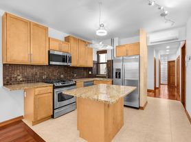 Upon entry you are welcomed by an open kitchen with loads of counter space, a center island, and Bosch appliances. The living room is gracious with bay windows and hardwood floors. There is a small home office for your WFH needs.