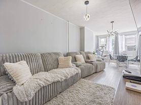 Inside, you're welcomed by a bright, open living room with brand-new renovations throughout. A separate dining area sits at the front, and the adjacent modern kitchen features stainless-steel appliances, new cabinetry, and stylish lighting.