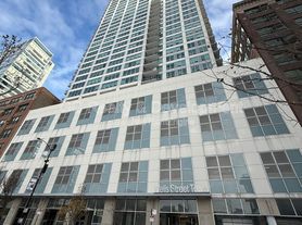 Modern 2-bedroom, 2-bath condo offering luxury living in a full-amenity building. Enjoy hardwood floors, high ceilings, and a cozy gas fireplace. The gourmet kitchen features stainless steel appliances and granite counters, while the primary suite boasts a double vanity, jetted tub, walk-in shower, and spacious walk-in closet. Relax on your private balcony or take advantage of the on-site fitness center, yoga/meditation room, and party space. Additional perks include in-unit laundry, 24-hour door staff, and garage parking for an additional $200/mo. Tenants pay electric only. Perfectly located within walking distance to LaSalle Station, Target, and Trader Joe's.