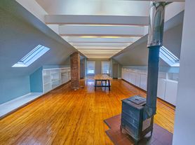 This is a SPACIOUS lofty second and third floor apartment. The unit features 2 car tandem parking spaces and has 3 bedrooms, a living room, eat in kitchen with laundry. Please keep in mind this can be used as a 4 bedroom as well. The top floor is a giant loft/suite style with a roof deck/wood stove and bonus 3/4 bathroom with tub. Its listed as a half bath, but the tub is a bonus. 3rd floor has its own heat register, the stove is not needed to heat the space.