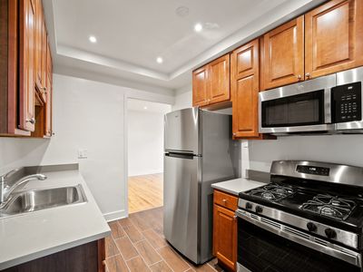 Beautiful three-bedroom and one bath apartment with hardwood floor, new kitchen, new bath, totally remodeled. Unit features central A/C, recessed lighting, and Tenant pays for electric and gas. Rental requirements include a minimum credit score of 675, a minimum monthly income of three times the rent, and a clean background check. A $75 application fee is required for each person over the age of 18. 1-year lease minimum, 2-year lease preferred. Available ASAP.